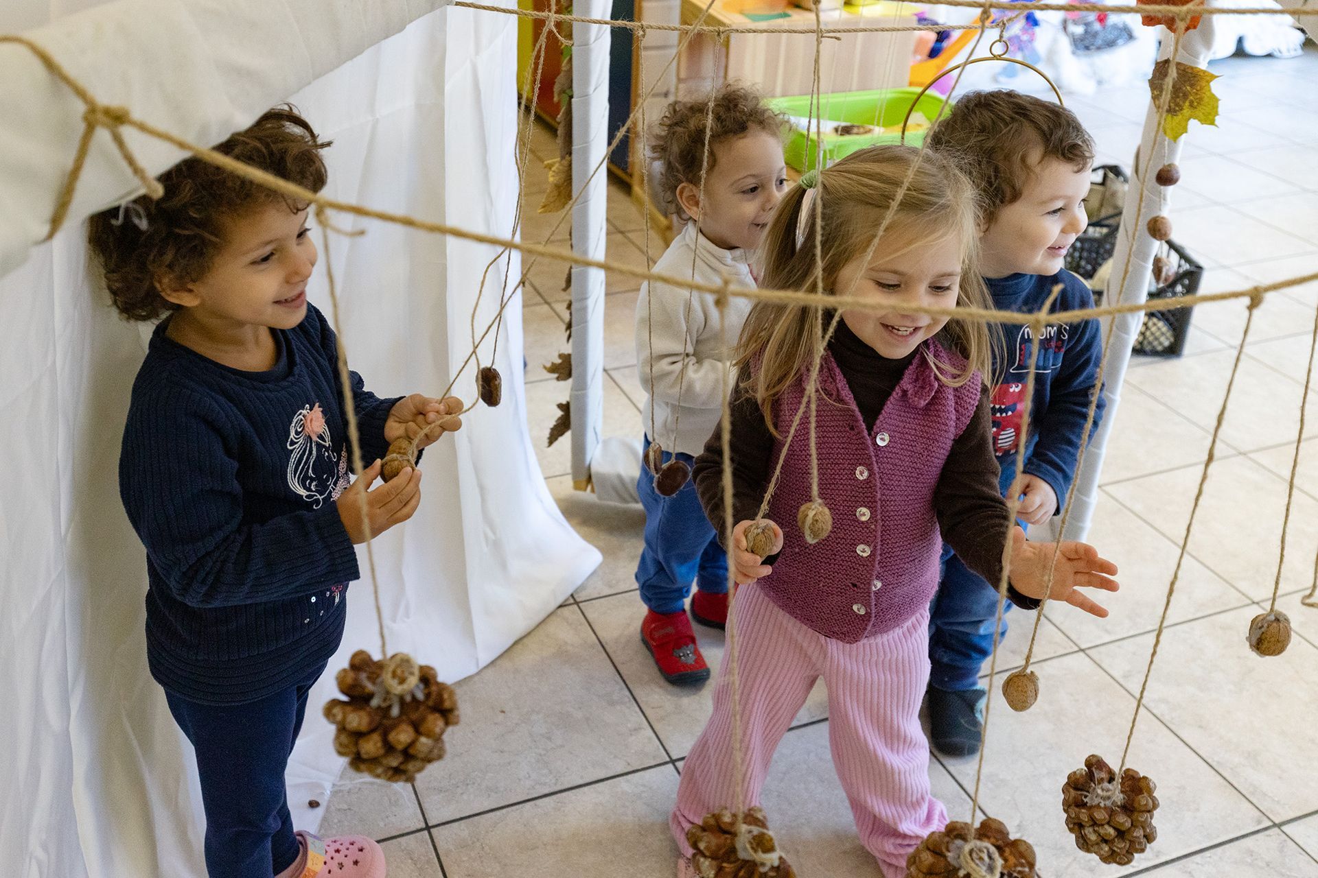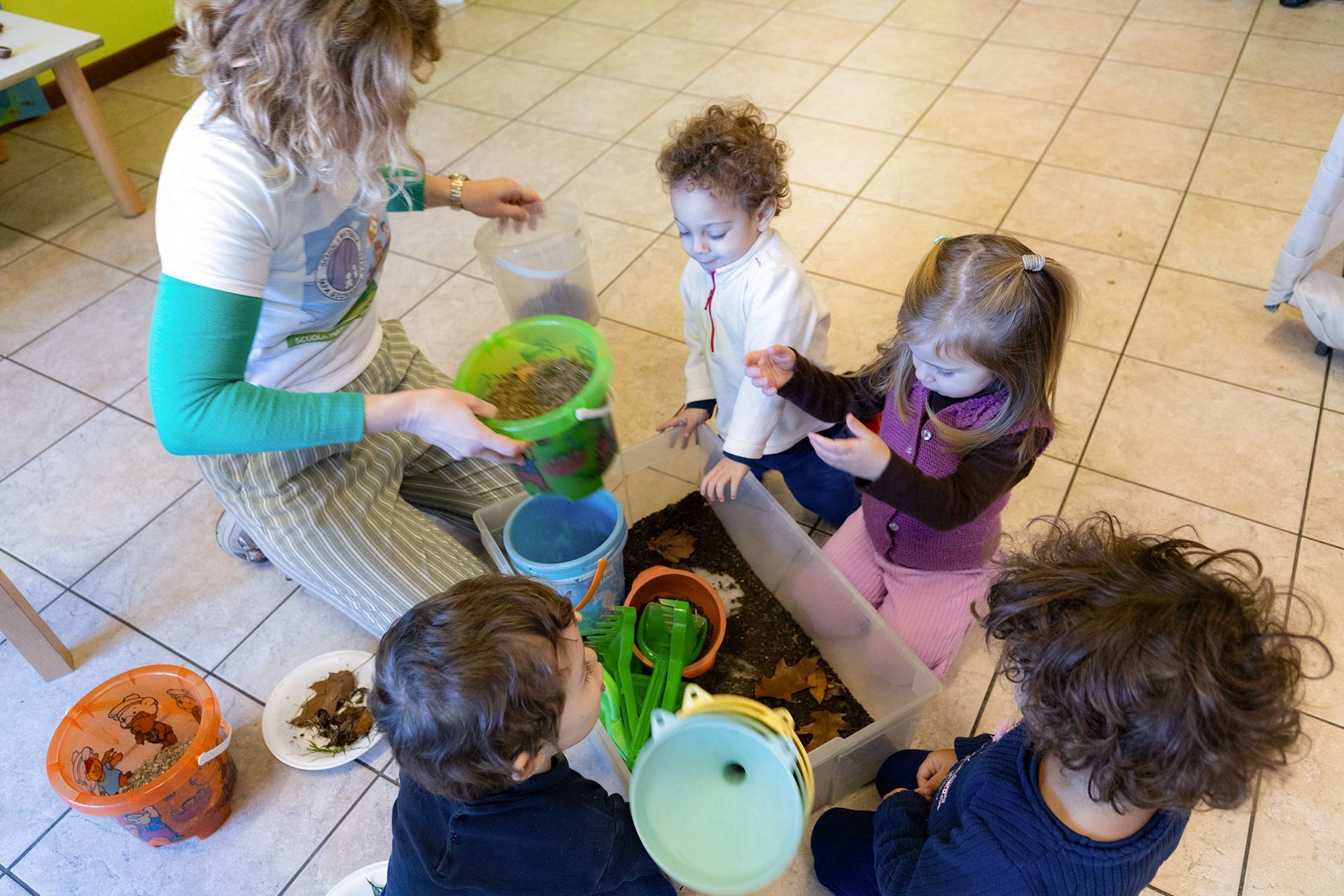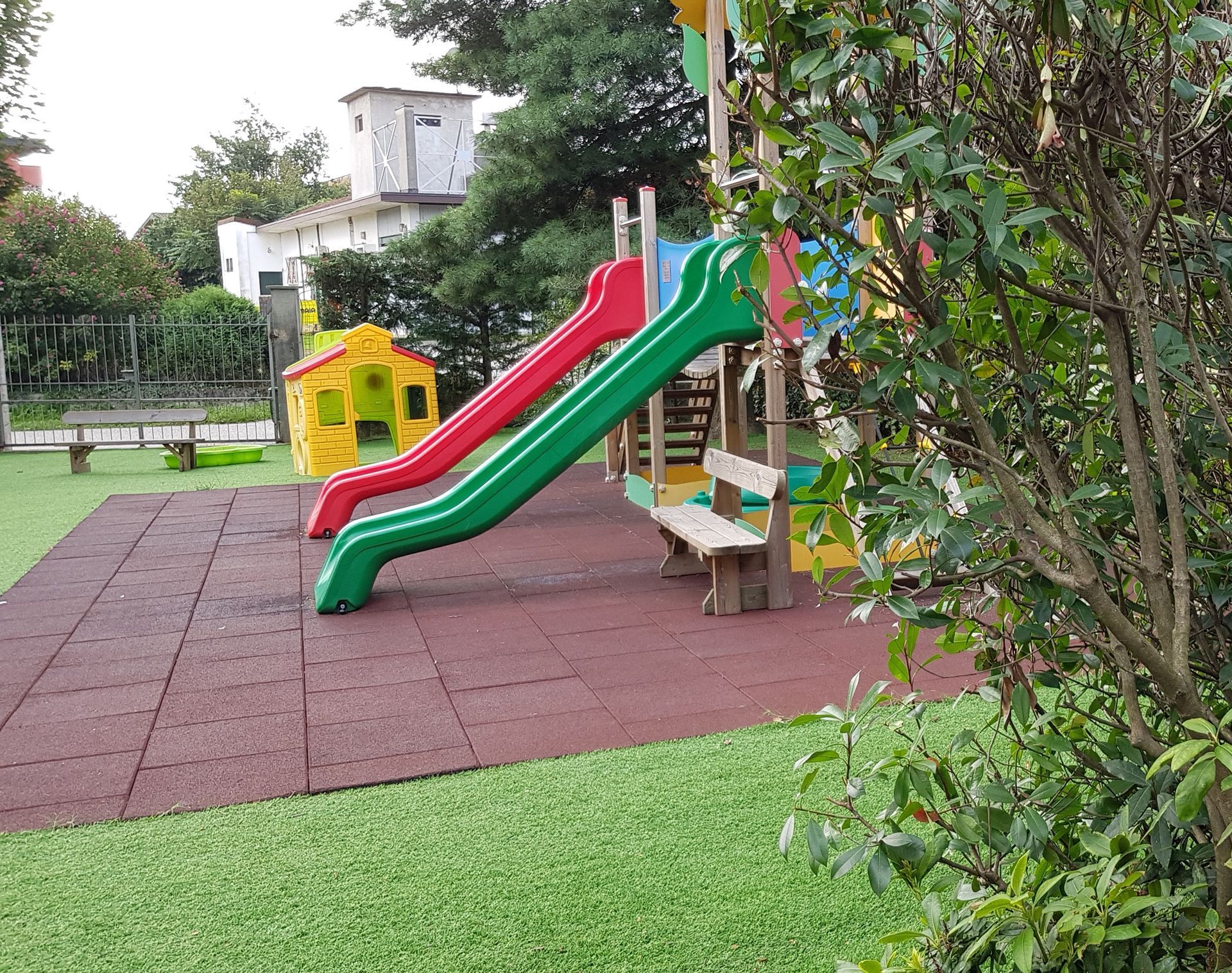 Per le attività all'aperto usiamo i nostri due giardini: uno è un parco giochi attrezzato e l'altro invita all'avventura, offrendo esperienze educative a contatto con la natura.