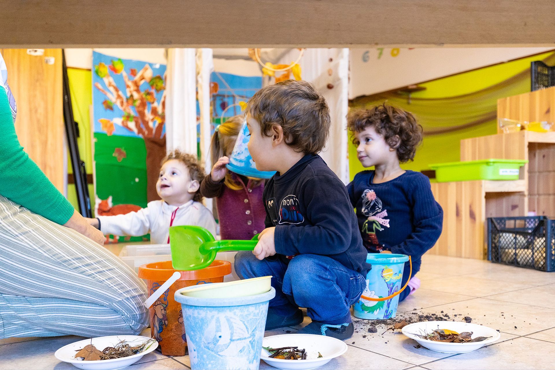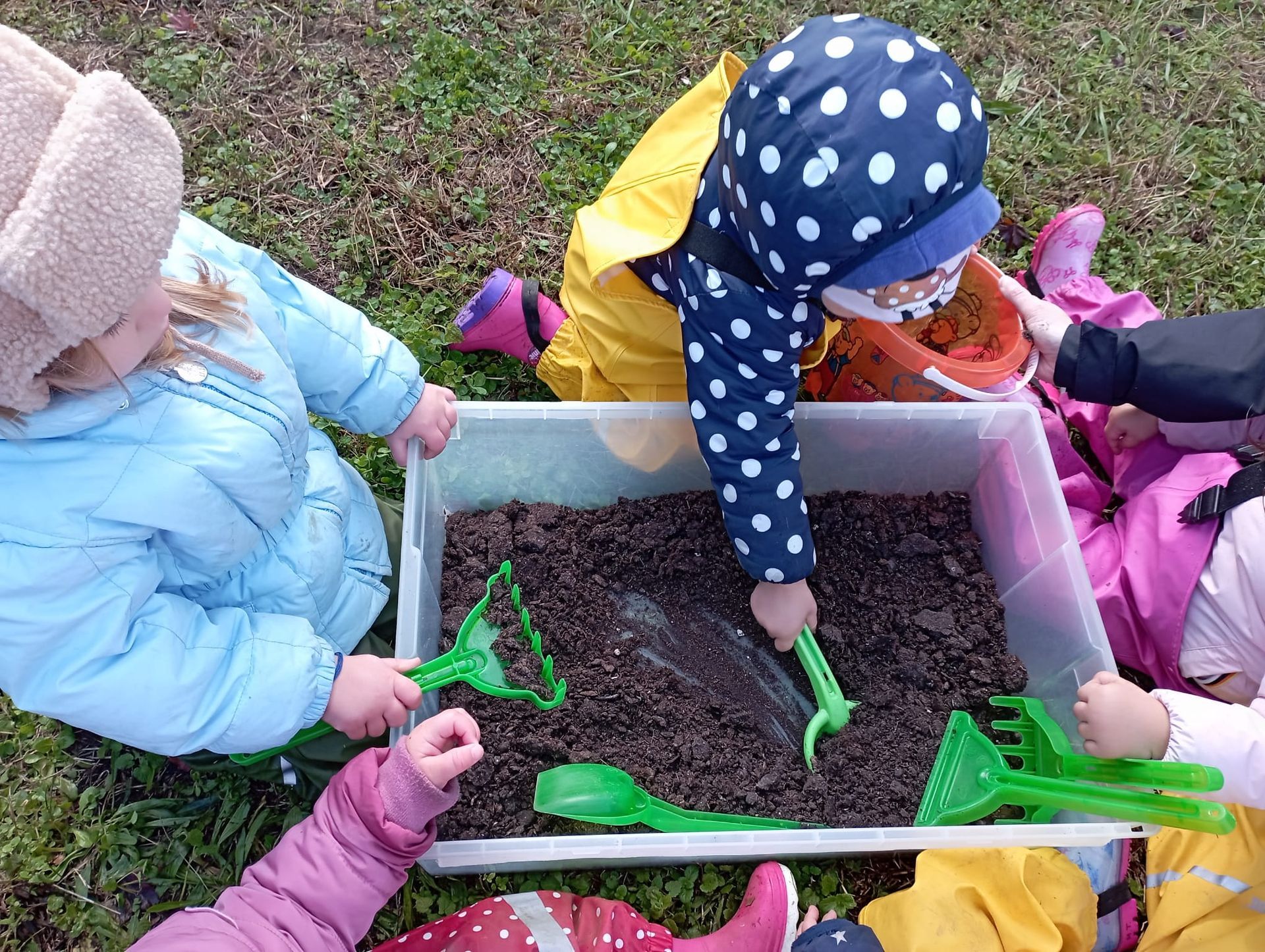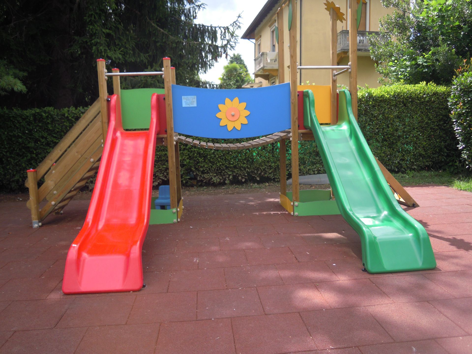Per le attività all'aperto usiamo i nostri due giardini: uno è un parco giochi attrezzato e l'altro invita all'avventura, offrendo esperienze educative a contatto con la natura.