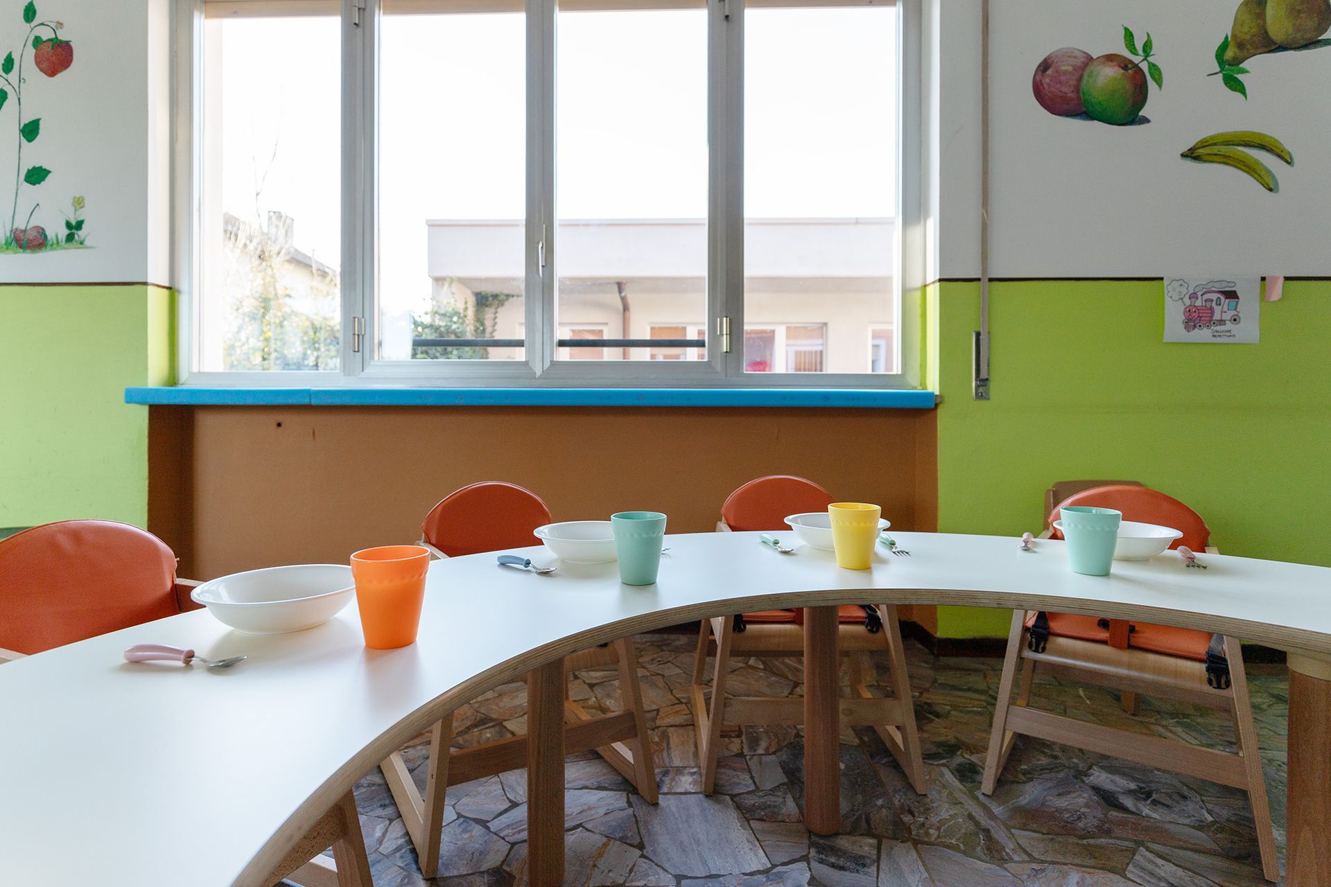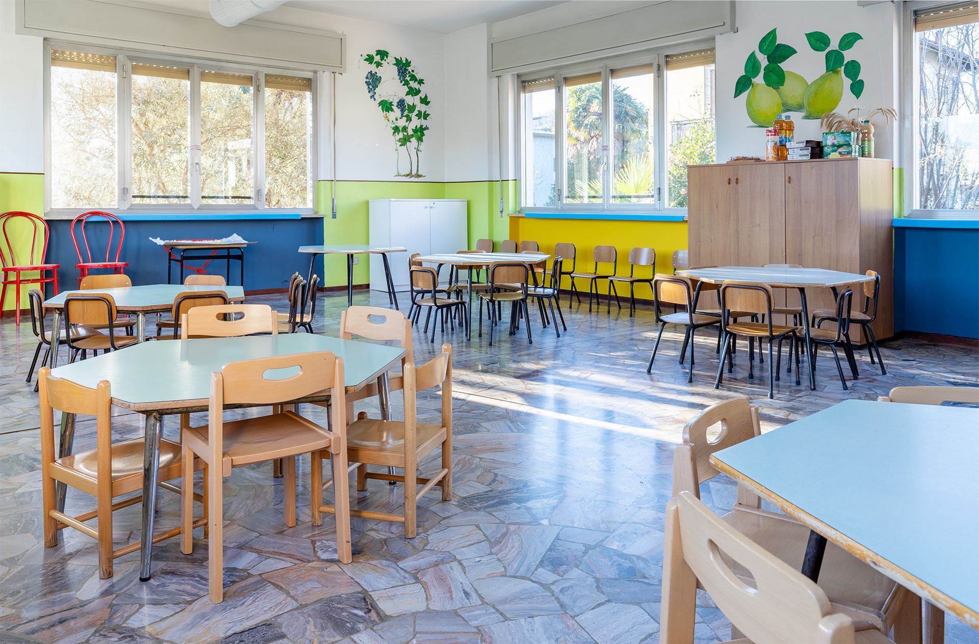 Uno spazio dedicato al pranzo, dove i bambini possono condividere i pasti in un ambiente confortevole e socievole.