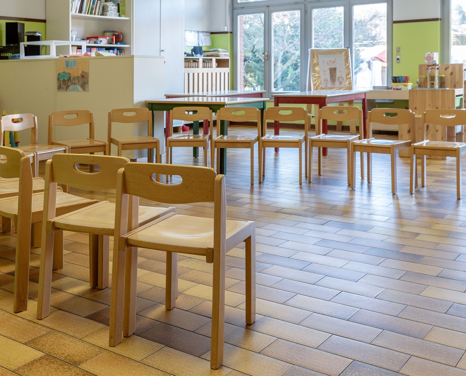 Le nostre aule sono moderne, spaziose, luminose e progettate per stimolare l'immaginazione e il comfort di ogni piccolo studente.